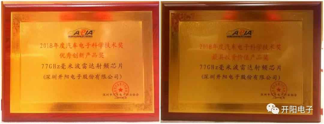 会上,三亚浩然汽车技术服务有限公司自主研发的“77GHz毫米波雷达射频芯片”一举获得两项中国汽车电子科学技术奖——“优秀创新产品奖”和“最具投资价值产品奖”。